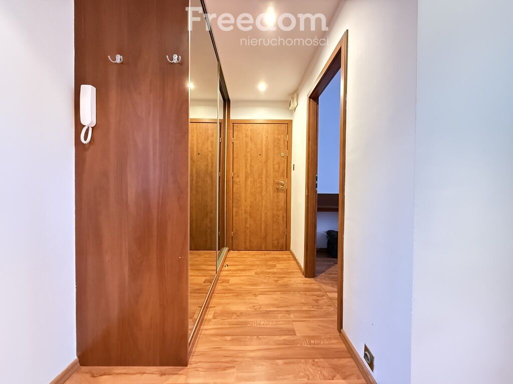 W przedpokoju znajduje się pakowna szafa w zabudowie z dwoma